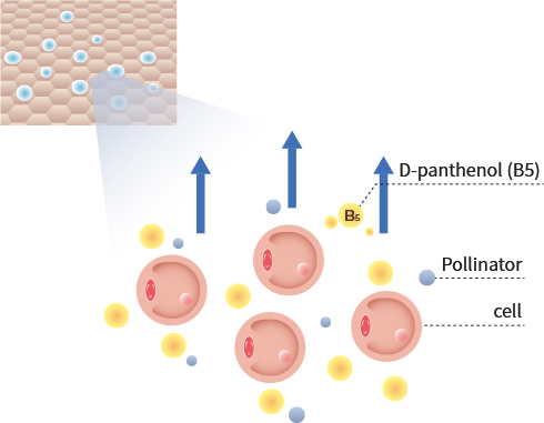 Panthenol locks the moisture factor of skin cells, and acts as a protective barrier by converting to vitamin B5, the moment it