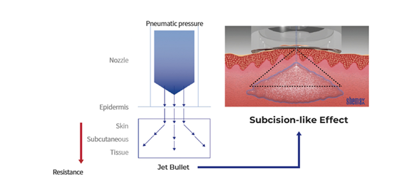 Transcutaneous Pneumatic InjectionSHEMAX uses compressed air pressure to spray liquid medicine instantaneously.