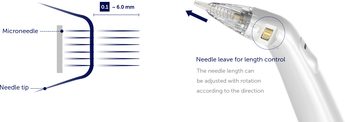 Needle depth can be adjusted in 0.1 mm increments from a minimum of 0.1 mm to a maximum of 6.0 mm.