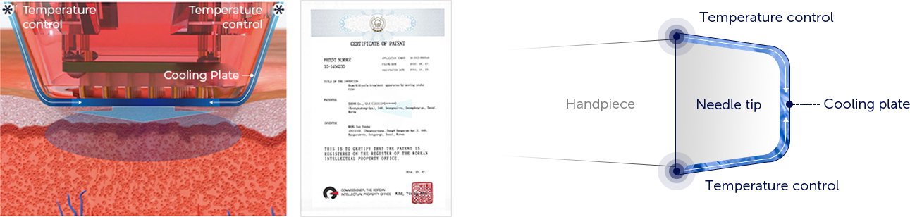 It cools the epidermis and transmits high-frequency energy through microneedles